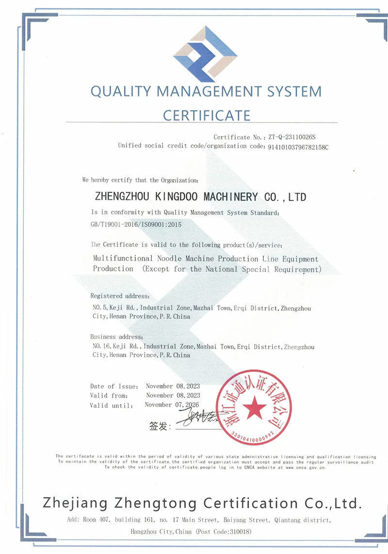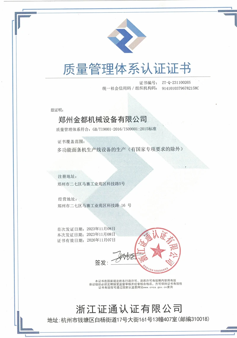 质量管理体系认证证书